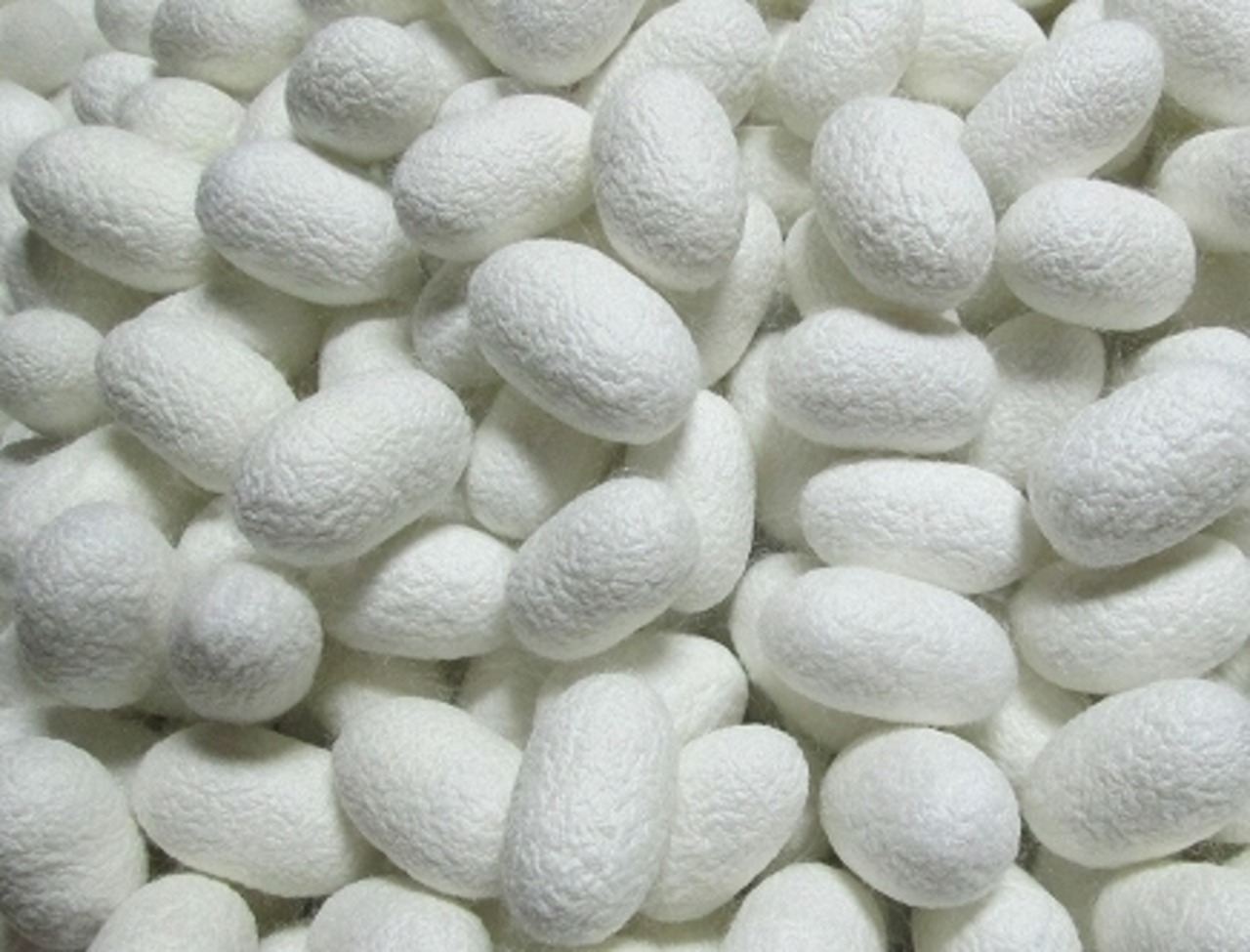 お蚕さんにより生み出される絹は呼吸する糸と言われ、吸湿性・放湿性にとても優れており、喉や肌を潤い、優しく守ってくれます。