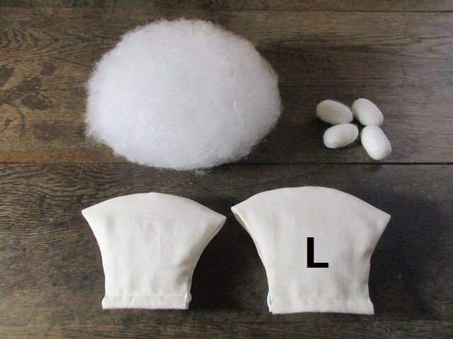 ◎Mサイズは繭3個、Lサイズは繭4個の真綿を入れております。