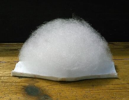 マスクの中には、お蚕ファームで大切に育てたお蚕さんの繭を、藁灰汁(わらの灰を沈殿させた水)でじっくりと炊きあげ、手作業で丁寧にほぐした繭の真綿をたっぷりと入れております。